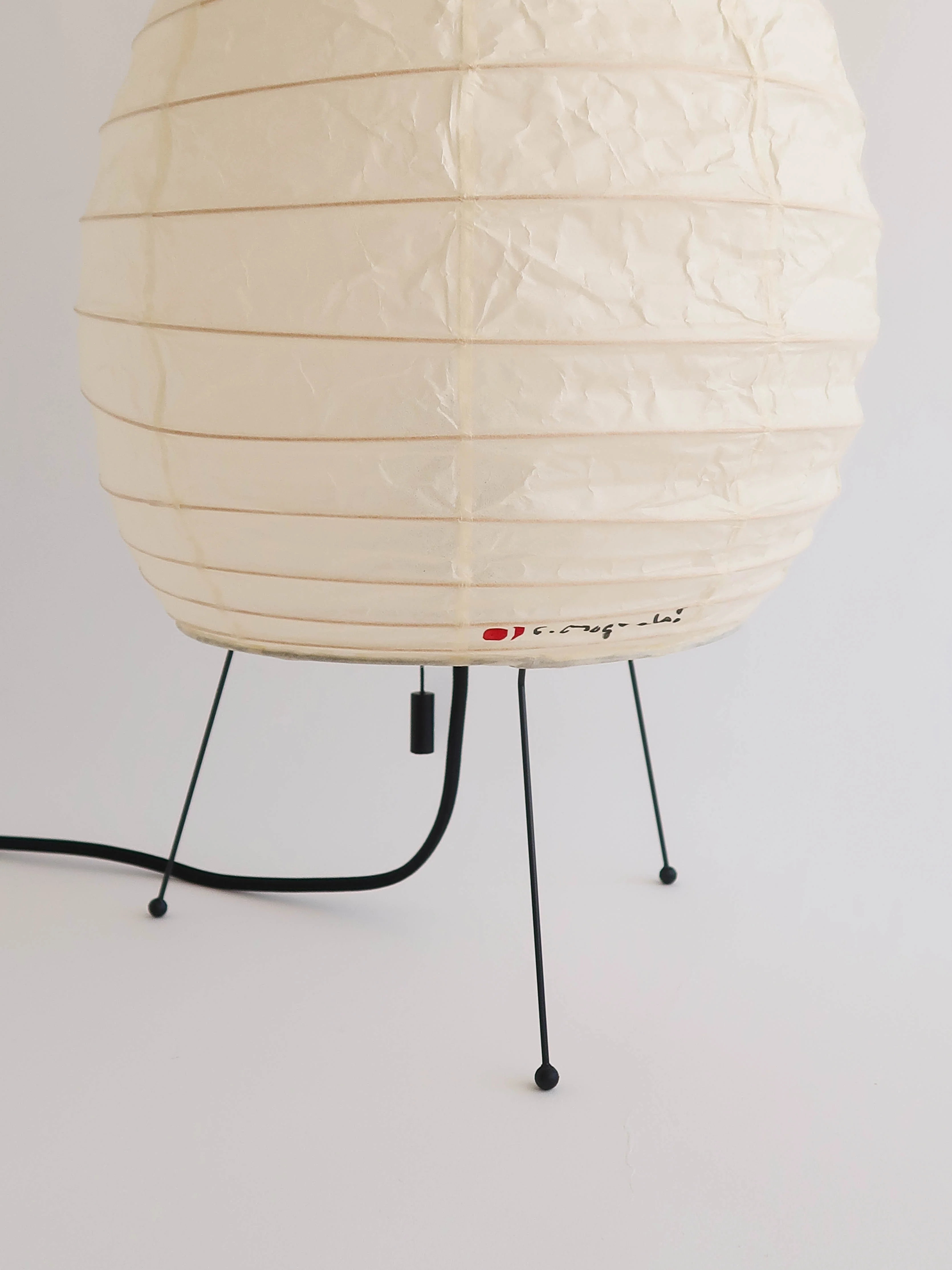 The 1N Table Lamp by Isamu Noguchi. Each luminaire is meticulously crafted by hand in the Ozeki workshop, a traditional family-run company based in Gifu, since 1951. 'Akari' meaning light, refers to the warm illumination and physical lightness of the Light Sculptures.