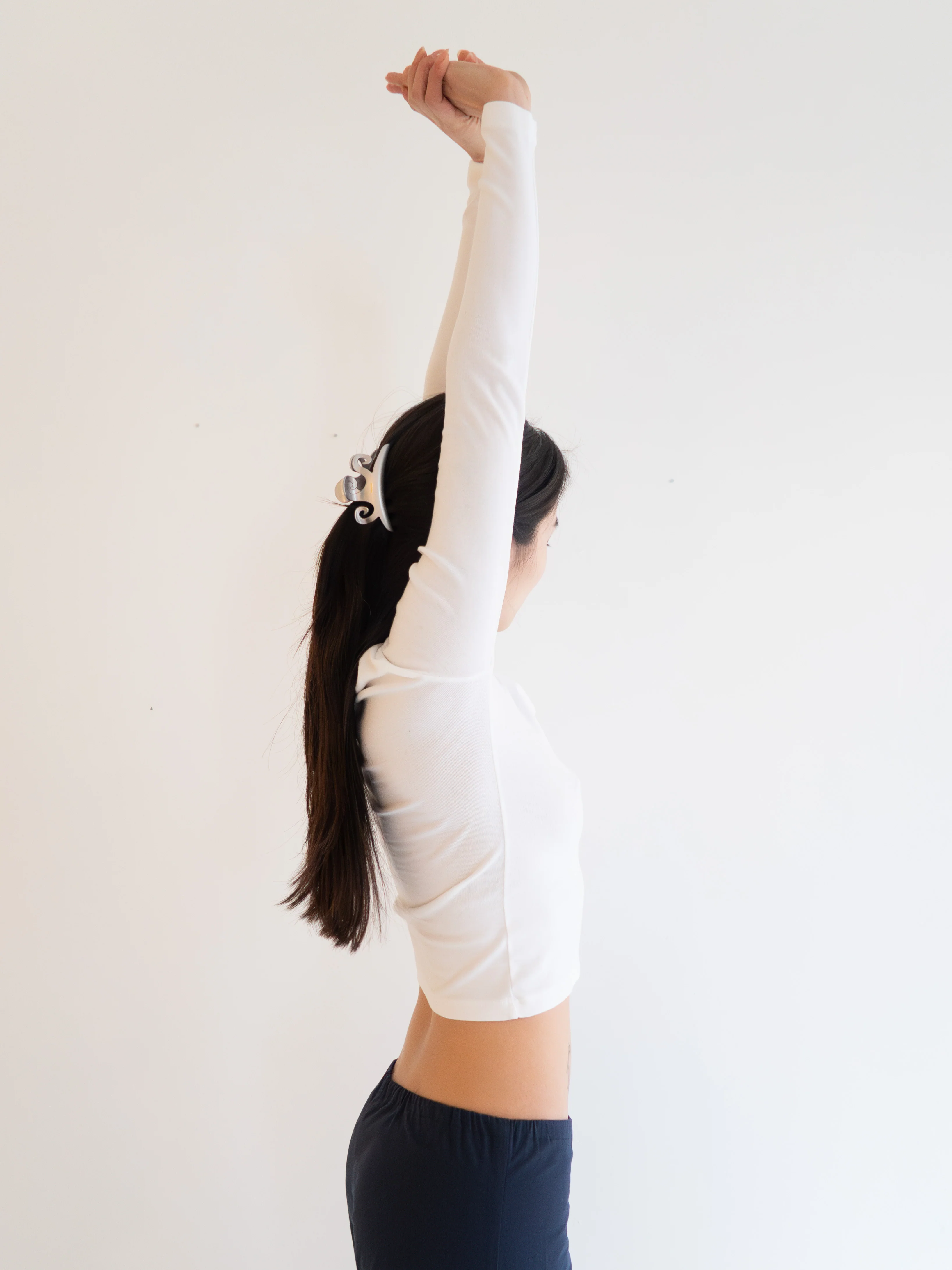 An ultra soft, cotton rib long sleeve. Fitted to perfection with a round neckline, it's the perfect base layer. This top is a true white and has enough length to tuck into a waistband or rest nicely on the hip.